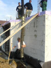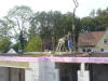 Heute wurde die Randschalung an der Decke befestigt, um sie schließlich zu betonieren. Hierfür kam wieder der Betonlift, der die drei Betonmischerladungen auf die Decke, sowie in die restlichen Fundamentlöcher hievte. Diese wurden nämlich heute auch noch schnell ausgehoben, um das Thema Fundament endgültig abzuschließen. Des Weiteren wurde von Volker und mir fleißig im Erdgeschoss an der Elektroverteilung gearbeitet. Außerdem kam mein Bauleiter Herr Golak vorbei, um nach dem Rechten zu schauen. Aber wie man sieht: Es läuft gut !! Ach fast vergessen. Nächste Woche Donnerstag (12.10.2006) soll Richtfest sein !!