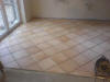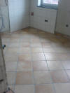 Heute gibt es nur einen kleinen Wochenrückblick der letzten Woche. Da mich eine Grippe mit Fieber an das Bett gefesselt hatte, konnte ich keine Tages aktuellen Fotos machen. Hier aber ein paar Fotos von den fertigen Fliesenarbeiten. Es wurden im Laufe der Woche alle Böden gefliest und verfugt. Außerdem wurde das Bad im OG fertig gefugt. In der Küche und dem HWR wurden die Fliesen diagonal verlegt , im Flur und Gäste WC gerade. Im Flur ist eine Rosone eingearbeitet worden. Außerdem wurde versucht, durch stärkeres Aufziehen des Fliesenklebers im Übergangsbereich zum Wohnzimmer, den Höhenfehler der Estrichbauers wieder aus zu gleichen. Hoffe das klappt.