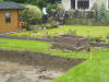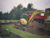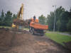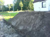 Nach einiger Termin und Technischer Absprachen, rückte dann am 18 August endlich der Bagger der Fa. Klostermann an. Sie hoben den alten, angefüllten Mutterboden aus. Es waren einige LKW Ladungen voll die abtransportiert wurden. Auch Josie kam voll auf Ihre Kosten, und durfte im Bagger platz nehmen.