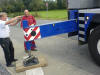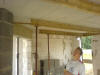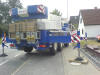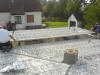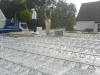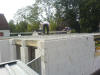 Wie immer bei Firma Thoben, wurde das Versprechen eingehalten. Heute kam dann die Fertigdecke. Martin, Marco und Daniel bereiteten das Auflegen der Decke vor. Es wurden Stützpfeiler gesetzt, die die Decke tragen sollen. Dann kam der große Autokran und baute sich auf. Die Nachbarn kamen, und schauten sich das ganze an. So etwas sieht man halt nicht jeden Tag nebenan. Dann hieß es erst mal warten. Der LKW mit den Fertigteilen hatte etwas mit Stau zu kämpfen. Ist halt Freitag Nachmittag. Aber die Zwischenzeit vertrieb man sich mit Schokolade und einem Schwätzchen. Kaum war der LKW da, wurde auch schon mit dem Abladen der Decke per Autokran begonnen. Das ging dann rasend schnell. Die nummerierten Fertigteile wurden, laut Zeichnung, an Ihren Platz gelegt. Zum guten Schluss noch die Baustahlmatten hoch, dann hat man nächste Woche nicht soviel per Hand zu schleppen! Hat mal wieder alles super geklappt. Also schönes Wochenende Jungs, und viel Spaß auf der Kirmes !